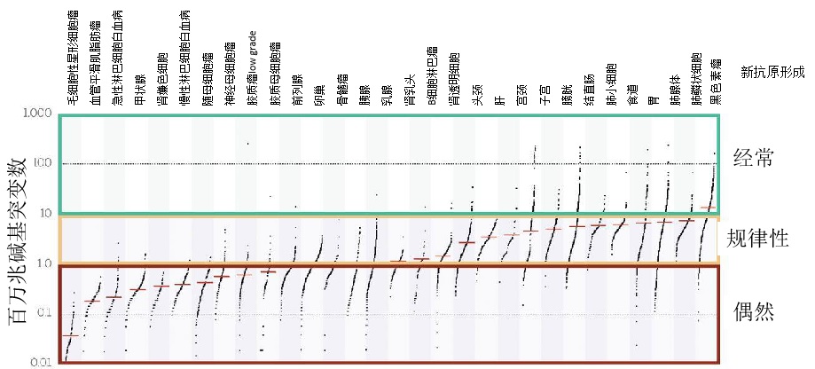 Mutations: Somatic mutation prevalence in human cancers.